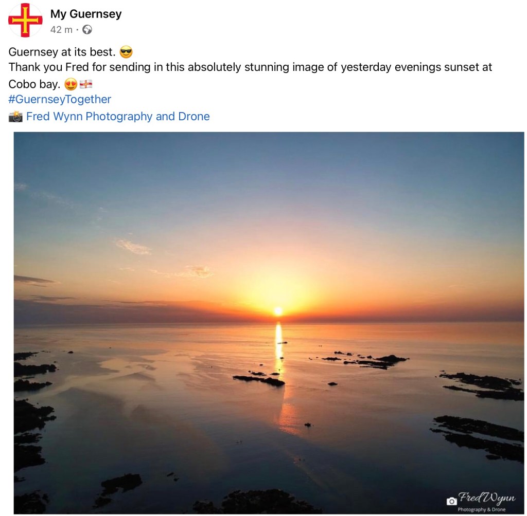 Drone pictures used in local social media 23 Jul 2021 / Fred Wynn Photography and Drone Great to see two of my drone pictures used by ‘My Guernsey’ and Herm Travel Trident Share this: Click to share on X (Opens in new window) X Click to share on Facebook (Opens in new window) Facebook Like Loading...