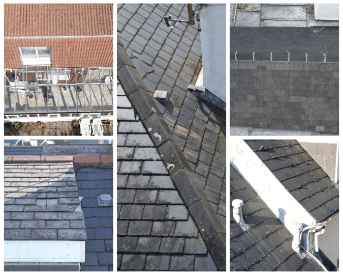 More than often, a top-down view of a roof will be sufficient as a quick inspection to inspect the roof for any damage – to assess if any works are required. I have experience of doing roof surveys in built up areas – where I will have with me an observer. In one recent survey, the client avoided having to erect scaffolding to get access to the roof – quite a saving !